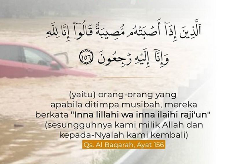 Artinya: “(yaitu) orang-orang yang apabila ditimpa musibah, mereka berkata “Inna lillahi wa inna ilaihi raji’un” (sesungguhnya kami milik Allah dan kepada-Nya kami kembali).” (QS Al Baqarah: Ayat 156 )