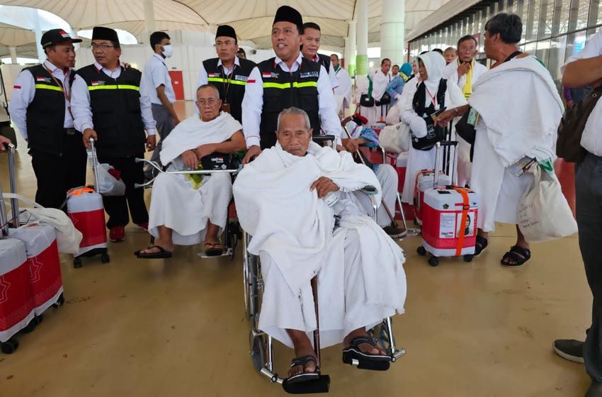 Direktur Bina Haji Arsad Hidayat mengatakan, dari 393 jemaah tersebut, ada 25 orang yang menggunakan kursi roda. Keluar dari Pintu Terminal A bandara, mereka diantar menuju bus dengan mobil golf. Setelah semua jemaah masuk bus, mereka diberangkatkan ke Makkah Al-Mukarramah.