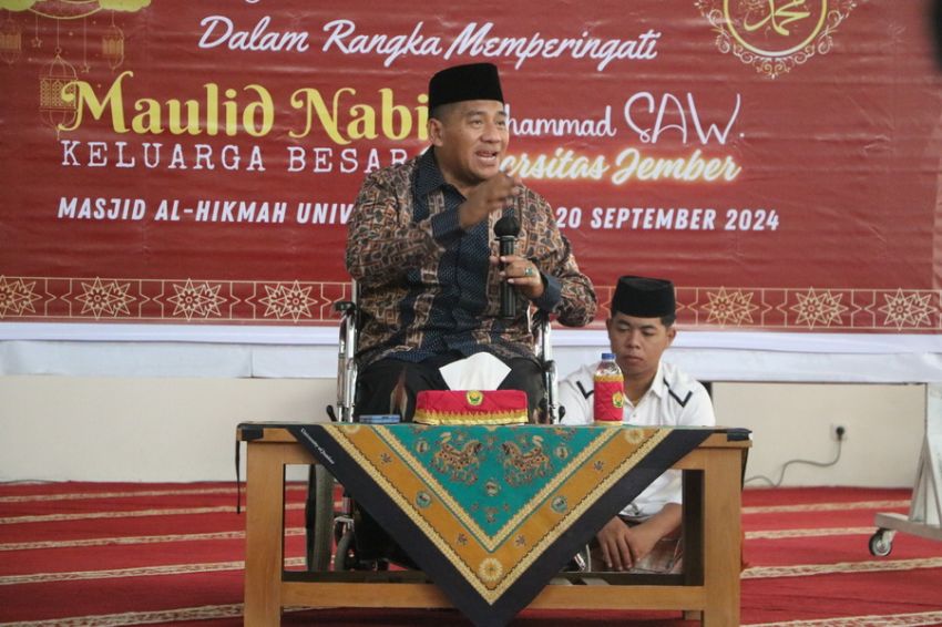 Sebelumnya saat memberikan sambutan, Rektor Universitas Jember mengajak hadirin kaum muslim keluarga besar UNEJ untuk selalu menjadikan Rasulullah SAW sebagai contoh dalam setiap bidang kehidupan, karena Nabi Muhammad SAW adalah sebaik-baiknya teladan.