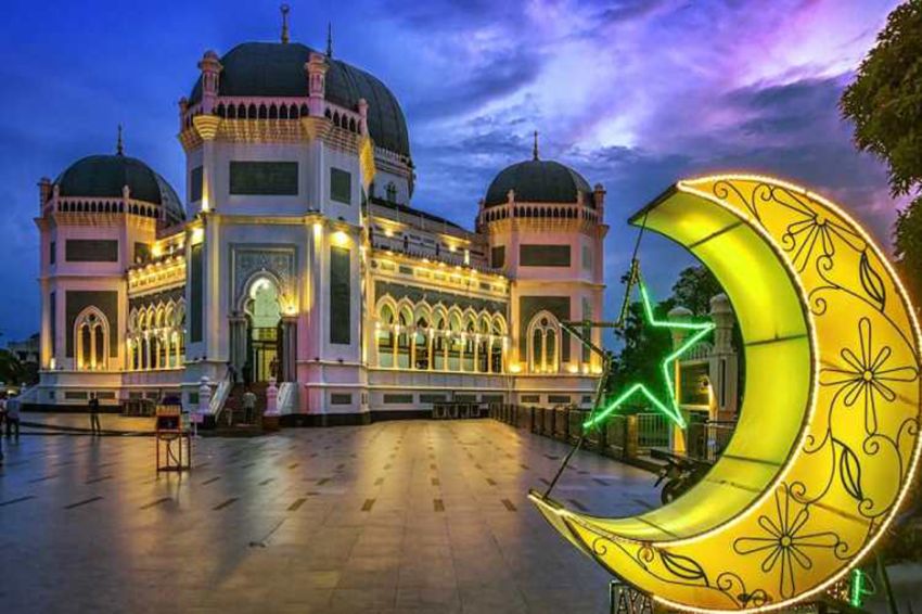 Masjid Raya Al-Mashun, peninggalan bersejarah Kesultanan Deli yang merupakan salah satu ikon Kota Medan. Foto/IG Noor3va