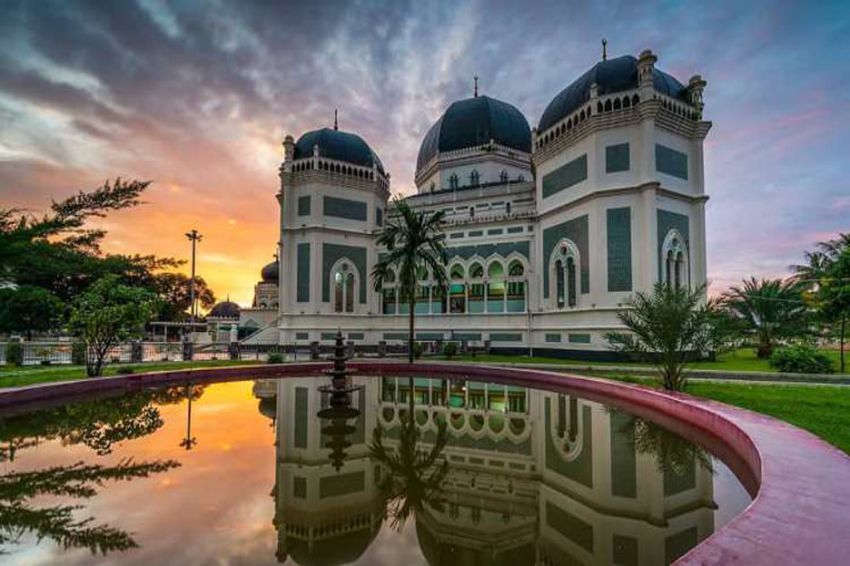 Masjid Raya Al-Mashun Kota Medan, salah satu peninggalan bersejarah Kesultanan Deli. Foto/andalastourism