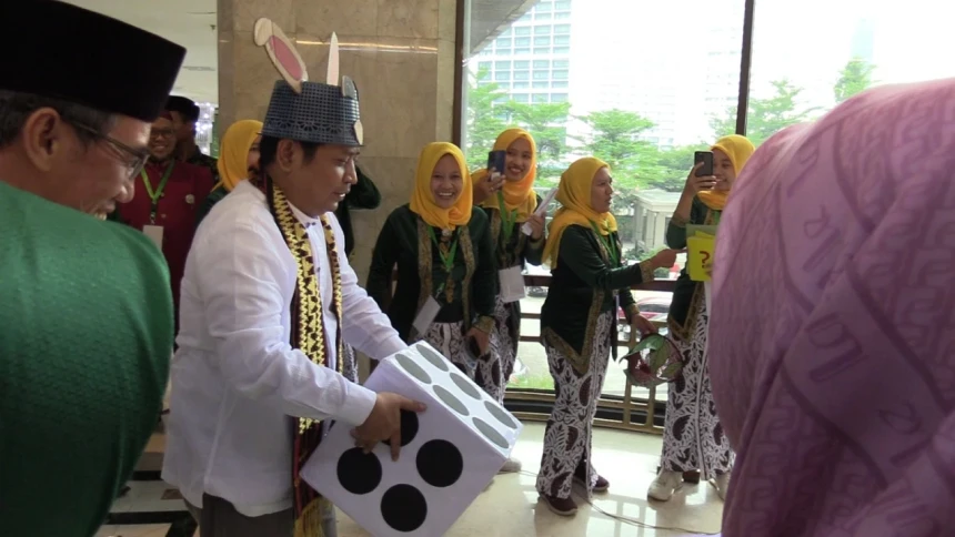 Setelah menerima dadu, Guru Besar UIN Sunan Gunung Djati itu kemudian melemparkan dadu dan mendapati angka 3 dengan keterangan “Awas ada boom! Kembali ke start!” Ali spontan terkekeh dengan peruntungannya pada permainan edukatif tersebut.