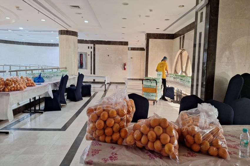 Selain itu, jemaah juga akan mendapatkan konsumsi pada saat kedatangan di Arab Saudi atau saat akan pulang ke Tanah Air. Setiap jadwal makan, disiapkan juga air mineral.