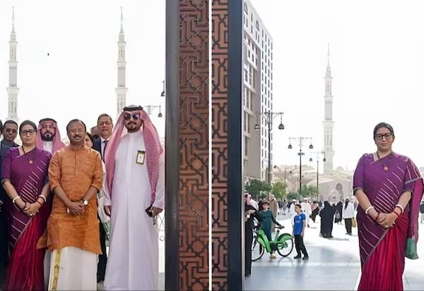 Menteri Persatuan Urusan Minoritas India, Smriti Irani, memasuki lingkungan Masjid Nabawi. Foto/Ilustrasi: India Today