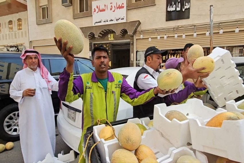 Jemaah haji Indonesia yang ada di situ berdatangan untuk mengambil buah melon itu karena gratis. Ada yang mengambil satu buah, dua buah, dan bahkan tiga buah.